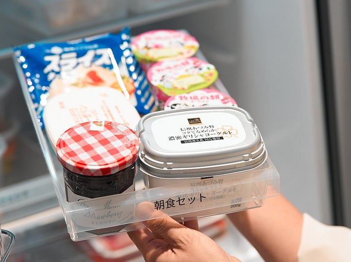 「朝食で使うものはセットにしておく等、わかりやすくグループで収納すると、冷蔵庫のなかを探す時間も短縮できて、忙しい朝も快適に過ごせます。また常備品なども、買い足すきっかけになります。」(清水麻帆)
