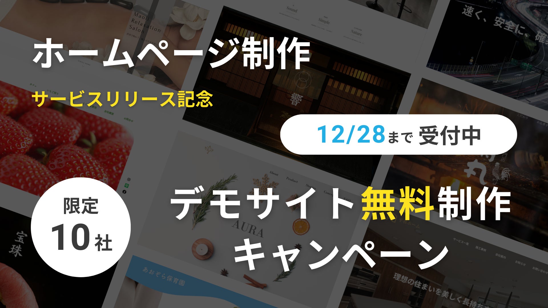 デモサイト無料制作キャンペーン:https://forms.gle/ZHVn5mkheUwtN4yC7