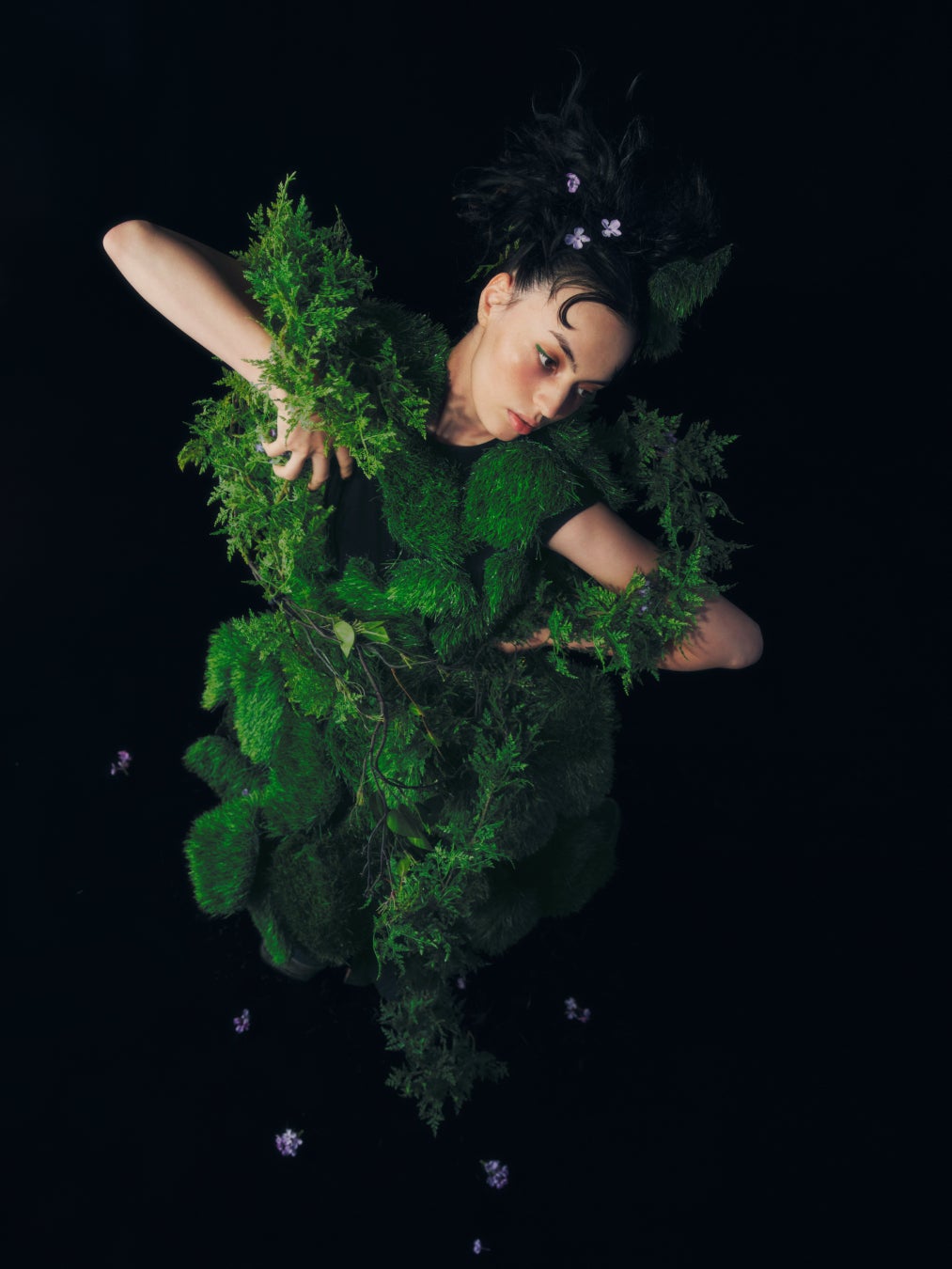 「廃材というと不必要なもの、汚いものというマイナスなイメージを持つ方が多いと思うので、『廃材をいかに素敵なものに変えるか』ということを意識して作りました。今回の作品は服というより、もはやアートなのですが、廃材もこういう使い方があるんだ、アート作品になり得るんだということを感じていただきたいです。そして作品を見て心が洗われるような気持ちになっていただけるとうれしいですね。」