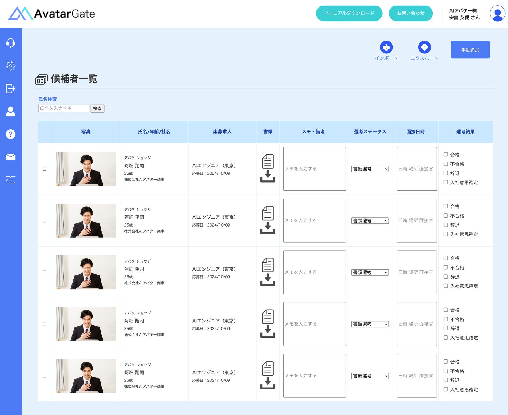 ・大量の応募者にも迅速対応:一度に複数の応募者をAIアバターが面接することで、企業の採用速度を飛躍的に速めます。