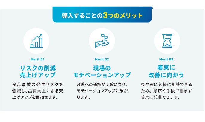 食に関する事業者様と共に地域の安全・安心を長期的に守っていくことを目指し、今回の新設サービスは、一度きりの改善コンサルティングや、衛生管理を全て代行する形式のサービスではなく、現場が自走的に衛生管理を行う支援をする伴走型のアドバイザリーサポートにすることで、価格を抑え、導入しやすく・継続しやすいメニューにこだわりました。