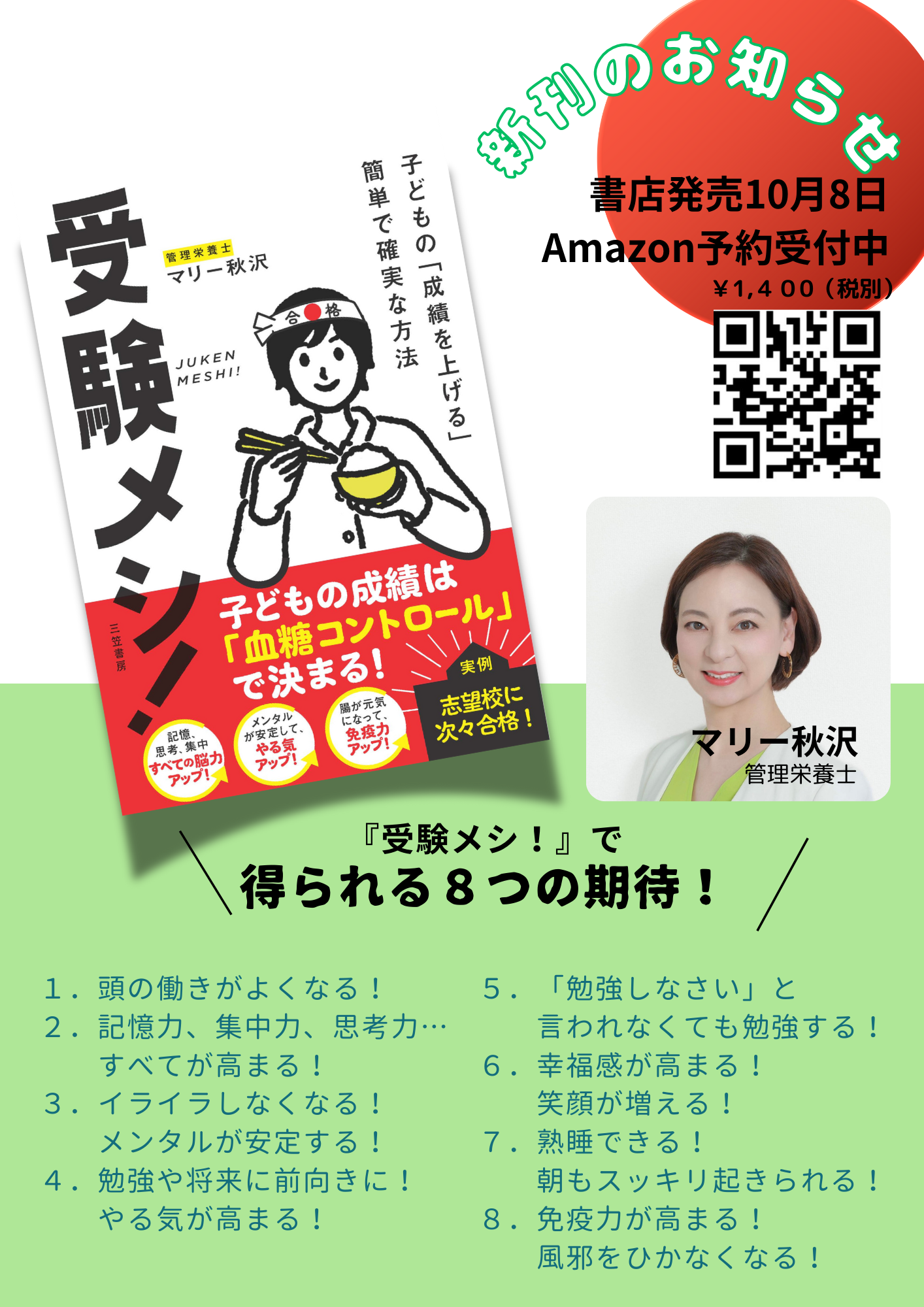 10/8『受験メシ!』出版。受験シーズン突入前に知ってほしい! 「最新栄養学に基づく食事法」と「厳選 25 の食材」で子どもの能力を最大化するメソッド