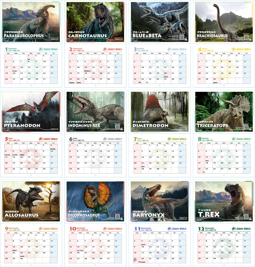 さらにカレンダーの中には、映画に登場した人気恐竜たちと一緒に写真や動画を撮られる無料ARツールのQRコードを掲載。お手持ちのスマートフォンでQRコードへアクセスするだけで簡単に楽しめます。