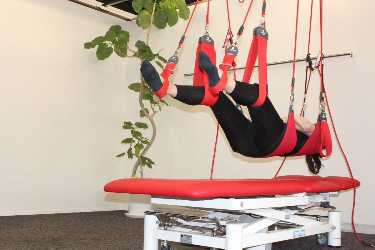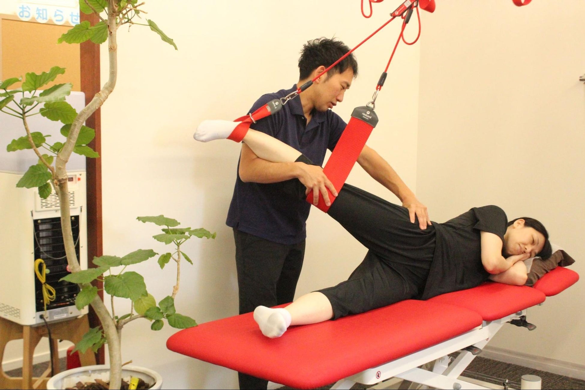 「T×4 Lab」では、理学療法士として13年以上の経験を持つ代表大日方(おびなた)による、最新のリハビリ機器「レッドコード」を使用し、体の一部を宙に浮かせた状態で施術を行いますこれにより、痛みや負担を最小限に抑えつつ、腰や股関節、膝などの不調がある箇所へアプローチします。 さらに、無重力状態での施術は、体の動きをより自然に整えるため、ぎっくり腰などの急性症状にも対応できます。