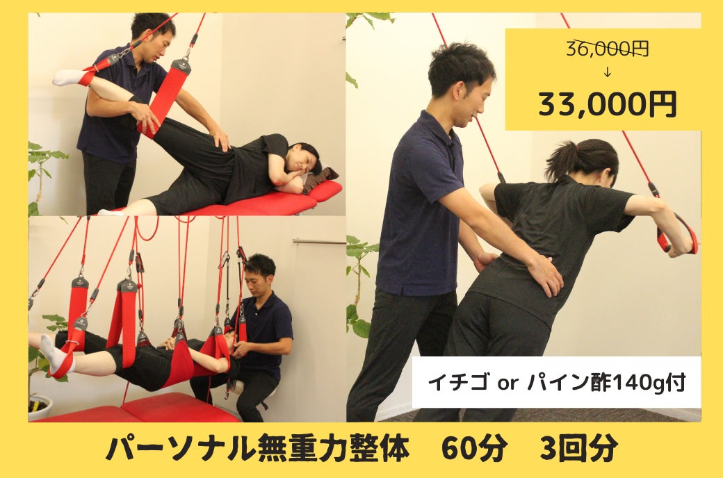 ●パーソナル無重力整体利用券(全3回分&イチゴorパイン酢140g付き)|33,000円