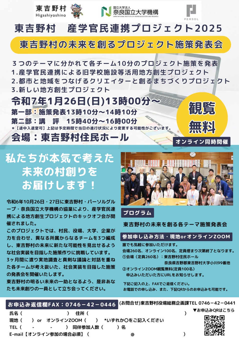 2025.01.26【東吉野村・パーソルグループ・奈良国立大学機構】 産学官民連携プロジェクト施策発表会を開催!