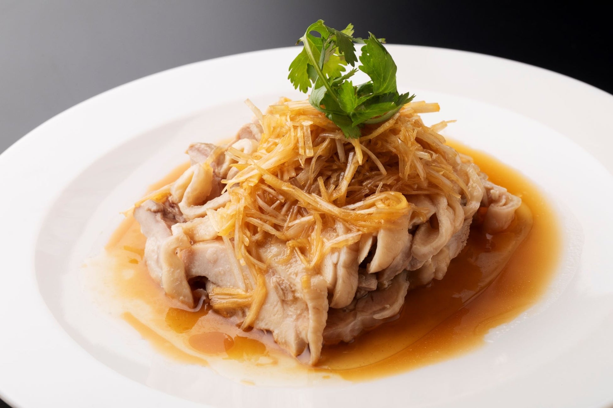 辛くない四川料理。さっぱりした前菜で、九条ネギと国産しょうがのさわやかな風味が鳥取の銘柄鶏「大山とり」にベストマッチの冷菜です。