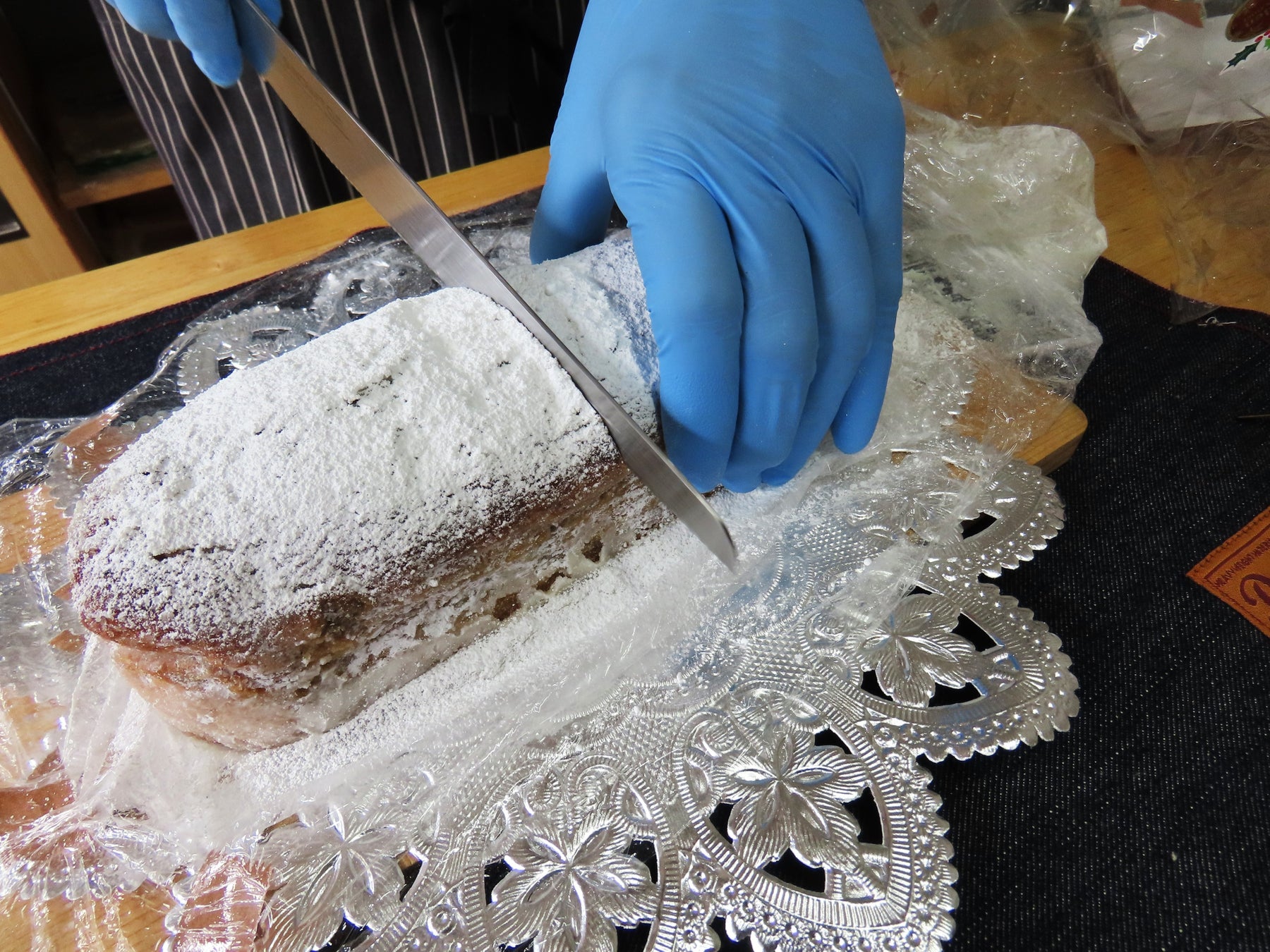 生地にもこだわっています。お店のモットーである“無添加”はもちろん、シナモン、ナツメグ、カルダモン、クローブなど、複数のスパイスをうさぱんやが独自にブレンドした「シュトレン・スパイス」を使った生地は、シュトレン特有の風味でスパイシーに仕上がっています。そこに、アイシングシュガーとバターが溶け込こむことで、風味が豊かになり、味わい深く、お召し上がりいただけます。