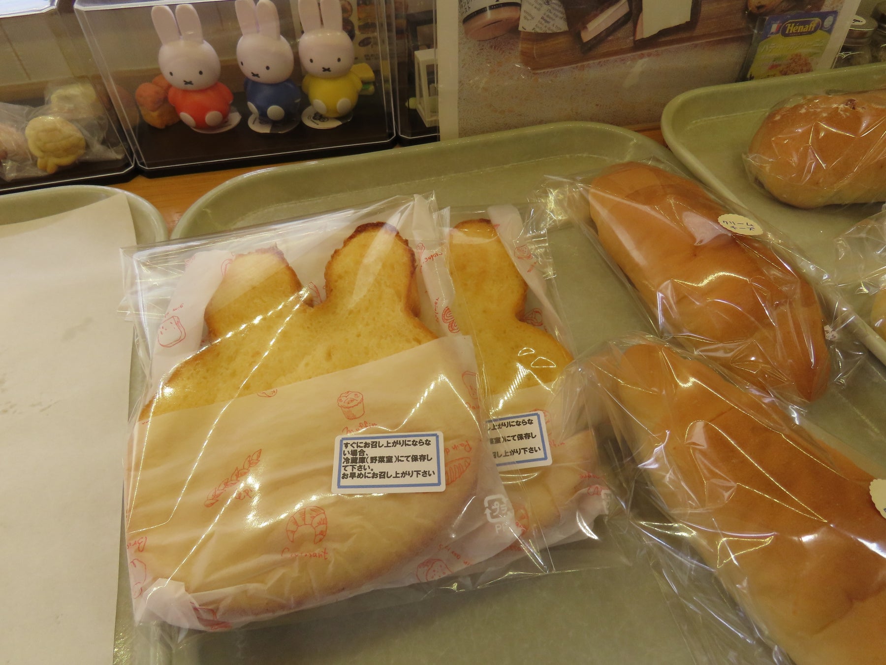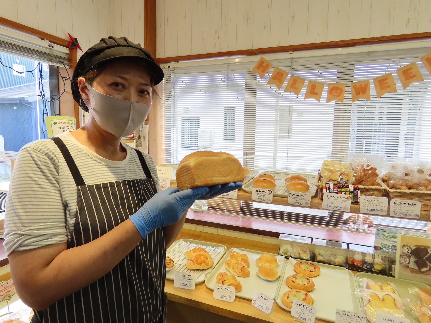 特に、原材料にはこだわっており、もちろん食品添加物は使用していません。パンを通じて健康になってほしいとの想いから、食物繊維が豊富な「ライ麦パン」をつくったり、小麦アレルギーの人でもパンを楽しんでもらえるよう「米粉パン」をつくったり、まちのパン屋さんとして、パンがもっと身近な存在となるよう尽力しています。看板商品となる、うさぎの形をした「食パン」(一斤・400円・購入時に好みの枚数に切り分け可能)やカスタードパン(1個・170円)等のかわいらしいパンのほか、酸味がほのかに香るライ麦パン「カンパーニュ」(1個・400円)や近隣住民から人気の「ごぼうパン」(1個・185円、以上全て税込)など、常時30種類ほど揃えています。