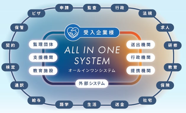 私たちの「mintoku Total Service」は、外国⼈労働者向けに設計された包括的なサポートプログラムです。⼊国から帰国に⾄るまですべてのプロセスを統合し、迅速かつ確実な法的⼿続きを⾏い、⽣活⾯での⽀援も含めた細やかなサービスを提供してまいります。これにより、外国⼈労働者が安⼼して働ける環境を整え、企業が直⾯する採⽤の課題を効果的に解決します。
