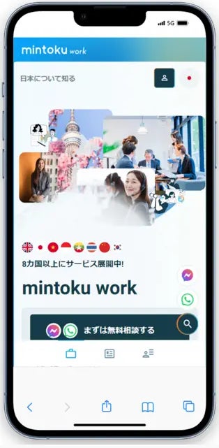 ▼外国⼈専⾨求⼈アプリ / Webサイト「mintoku work」