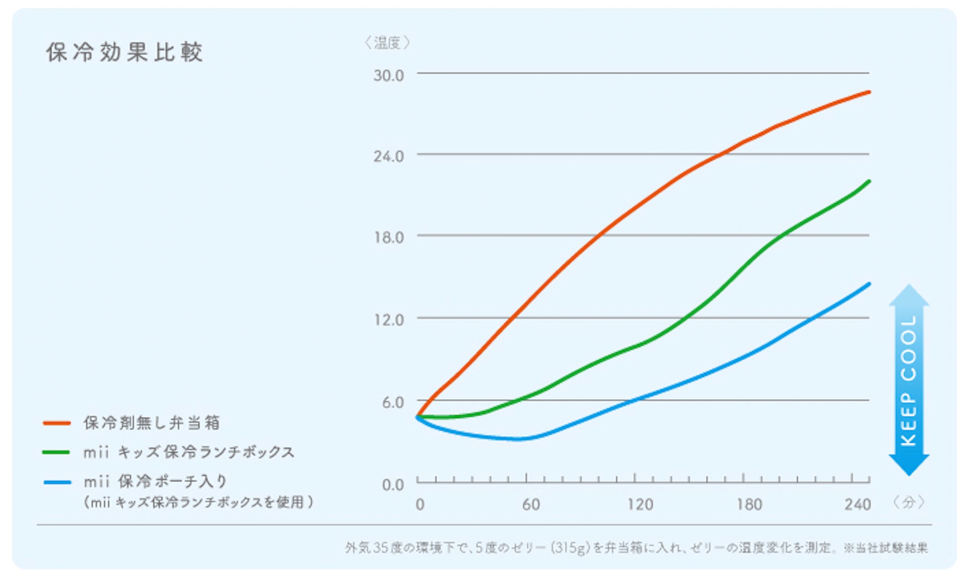 「mii キッズ保冷ランチボックス」の特徴である「容量を変化させることで長い年月使える点」「保冷剤と蓋が一体化されていることで手間やストレスが軽減される点」が高く評価されました。