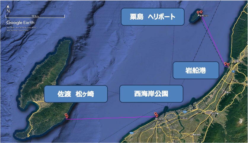 ~空の道を拓く更なるチャレンジ 新潟県 佐渡島・粟島2拠点から同時飛行~ 日本海を渡り「物流ドローン」が届ける特産品物流動線開拓の実証実施について