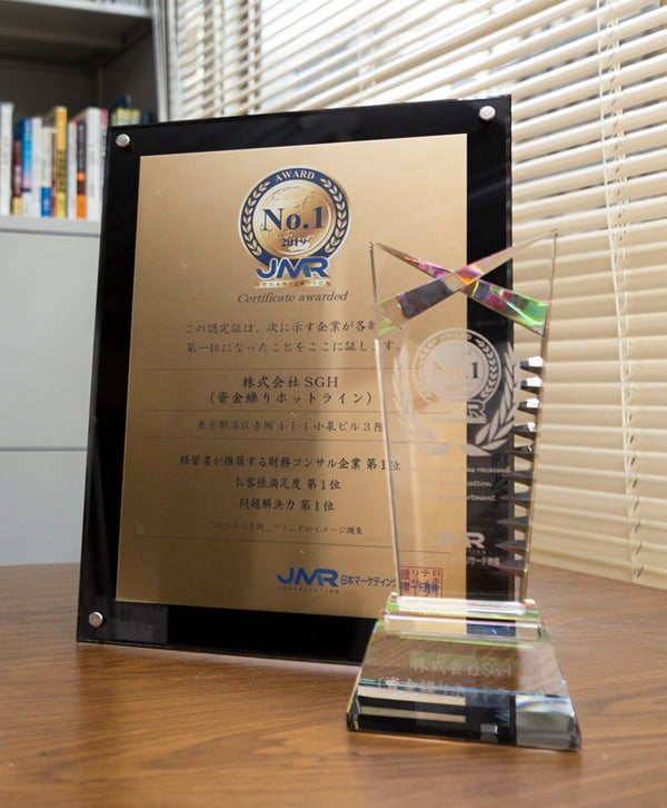 日本マーケティング機構による「経営者が推奨する財務コンサル企業」「お客様満足度」「問題解決力」の3部門で、関連企業の株式会社SGHがNO.1に選ばれました。