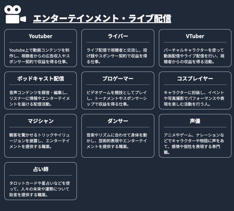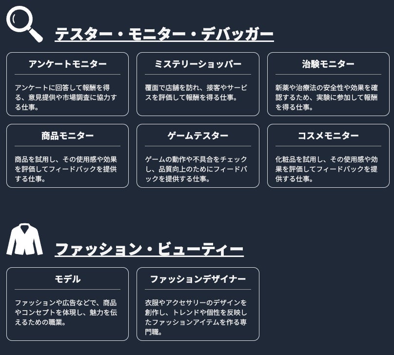 MOONLIGHTは、単なる収入目的の仕事としての副業ではなく、自分の趣味や休みの日に何気なく行っていることを活かして副業を始めることを推奨しています。この「好きなことを仕事にする」というスタンスこそ、MOONLIGHTの存在意義であり、利用者が負担なく楽しみながら副業を始めるためのサポートを行っています。