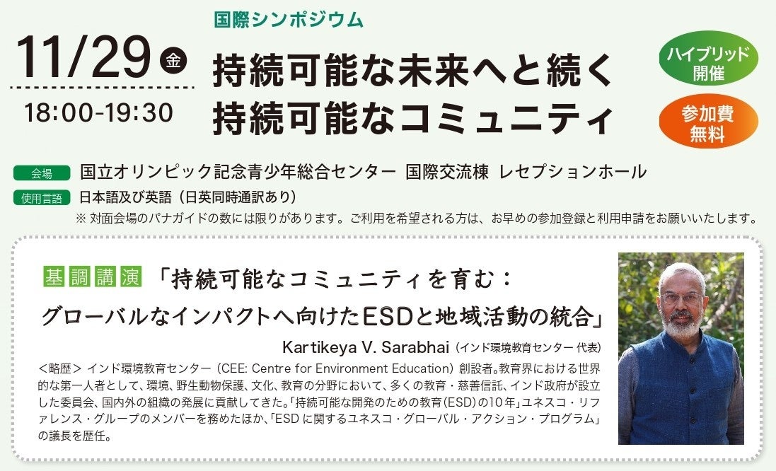 環境教育の世界的権威、インド環境教育センター代表のKartikeya V. Sarabhai氏による基調講演「持続可能なコミュニティを育む ―グローバルなインパクトへ向けたESDと地域活動の統合―」