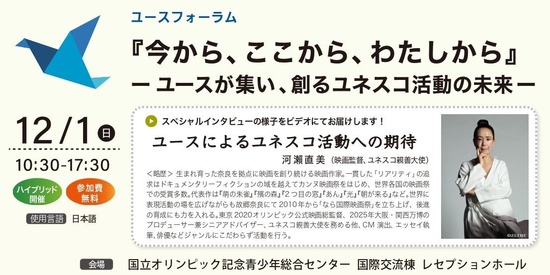 映画監督/ユネスコ親善大使 河瀨直美氏のスペシャルインタビュー動画「ユースによるユネスコ活動への期待」