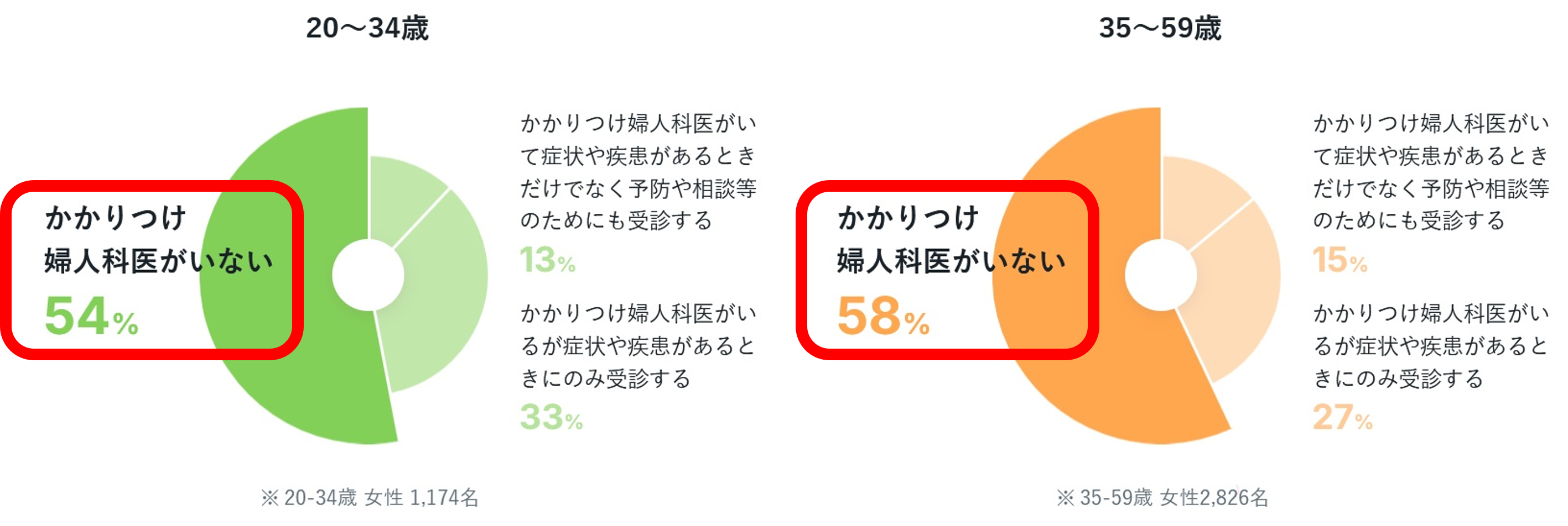 20~34歳では約5割、35~59歳では約6割が「かかりつけ婦人科医がいない」と回答。