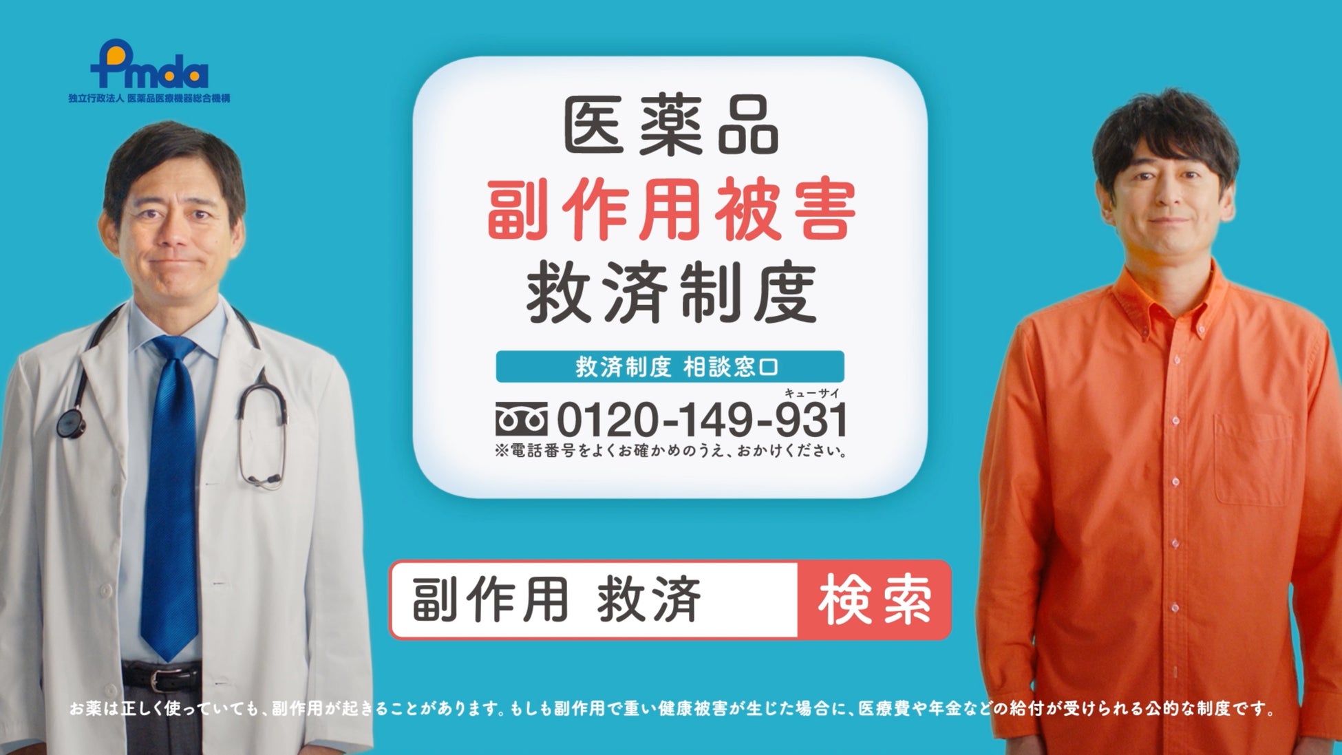 独立行政法人医薬品医療機器総合機構(PMDA)は、薬を服用するすべての方へ「医薬品副作用被害救済制度」を広くお伝えするため、博多華丸・大吉さんを起用した広報CM「あなたの薬の、もしものお話」篇を公開。10月17日(木)より、全国ネットテレビ、WEBなどで放映開始します。