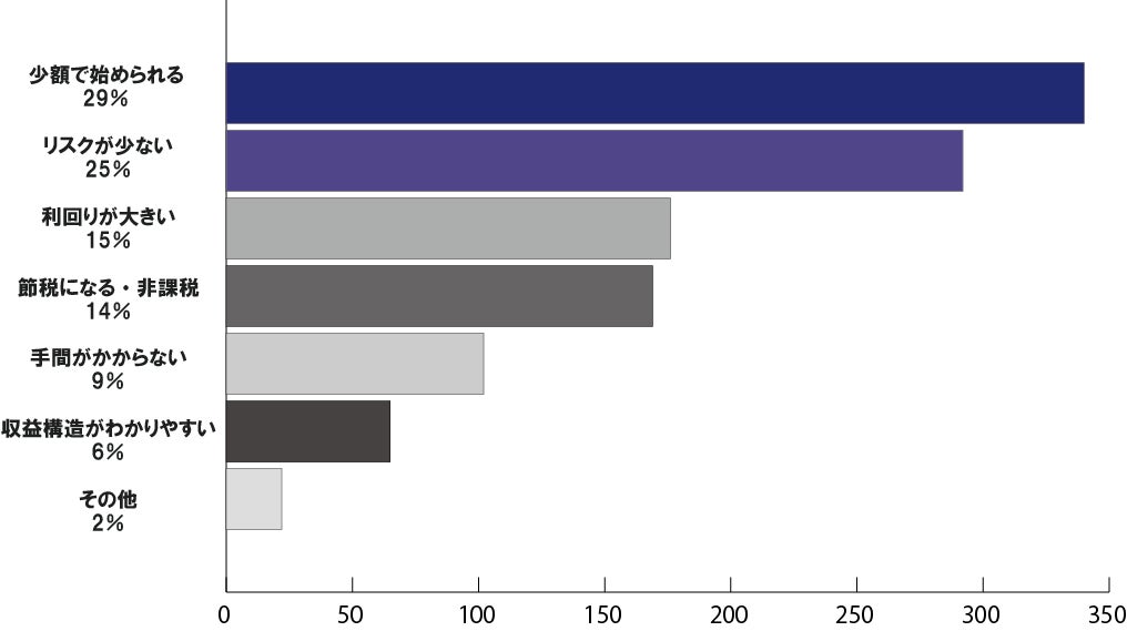 やはり投資には収益性の大きさよりも、リスクを抑えて安定的に運用できるという点を求める声が多いことが分かる。