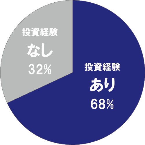 投資経験の有無について「経験がある」と答えたのは68%、「経験が無い」と答えたのは32%。「経験が無い」と答えた32%のうちの7割位上が、投資を行っていない要因として「知識の無さ」と「資金のなさ」を挙げる結果となった。