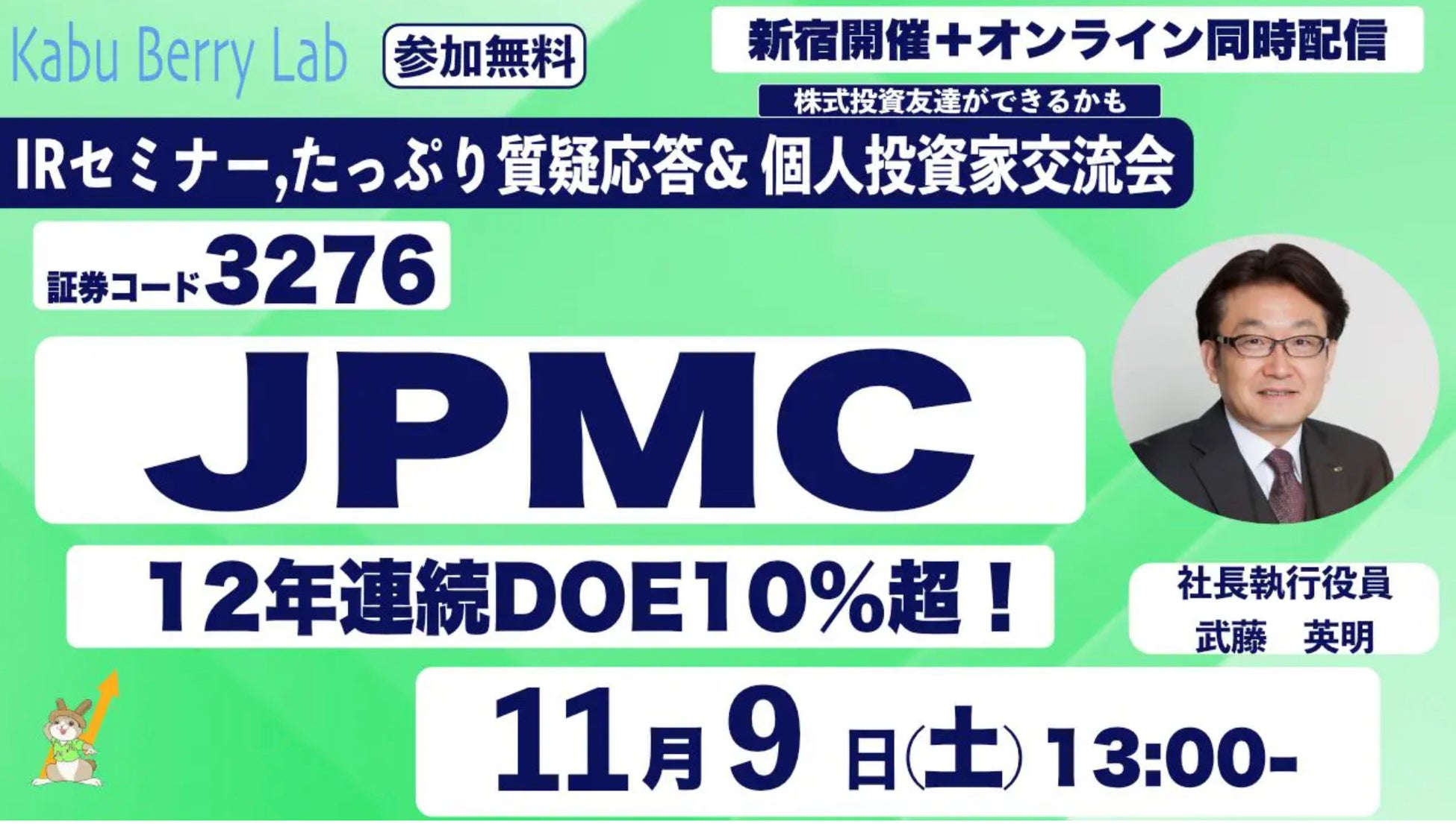 Kabu Berry Lab [東京開催]JPMC(3276)IRセミナー+投資家交流会(たっぷり2時間)