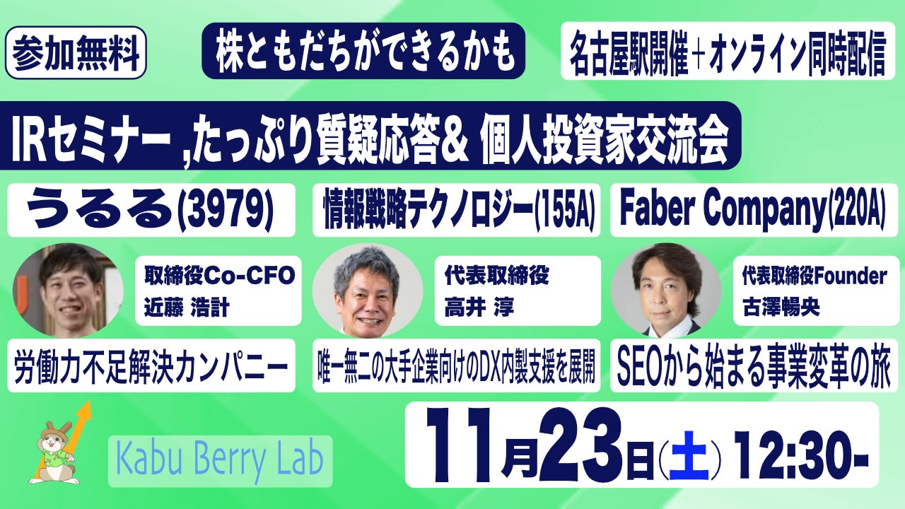 Kabu Berry Lab [うるる(3979) ・情報戦略テクノロジー(155A)・Faber Company(220A)IRセミナー+投資家交流会]