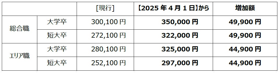 ●既に入社している新卒の総合職・エリア職(非管理職)についても、給与水準を21,200円~49,900円引き上げます。