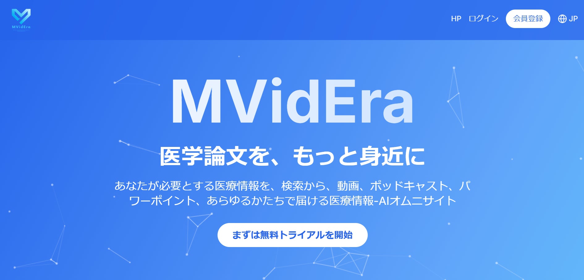 【医学論文-AI要約動画プラットフォーム「MVidEra」が大規模アップデート】論文検索から、ポッドキャスト、パワーポイントまで生成可能に(最大80%オフキャンペーン)