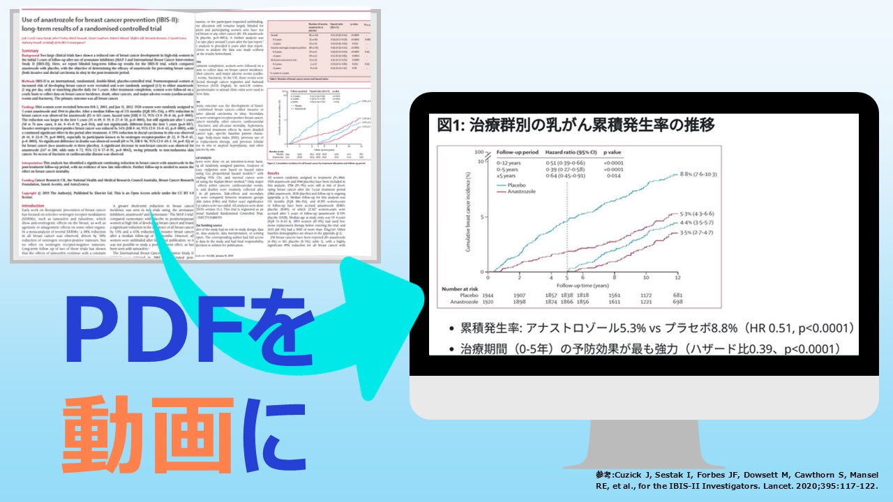 AIによる医学論文の動画化: 難解な英語医学論文を、生成AIを活用してあらゆる言語で分かりやすい2~5分の要約動画に変換します。