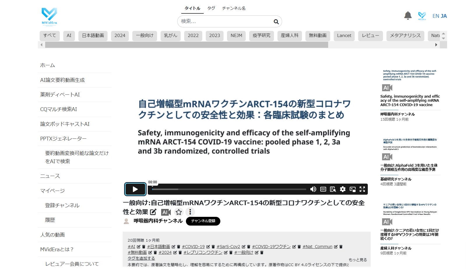 株式会社MU(本社:群馬県、代表取締役社長:村田悠典)は、生成AIによって、医学論文を要約動画で共有し合う革新的なプラットフォーム「MVidEra(エムヴィデラ)」の大規模アップデートを実施しました。