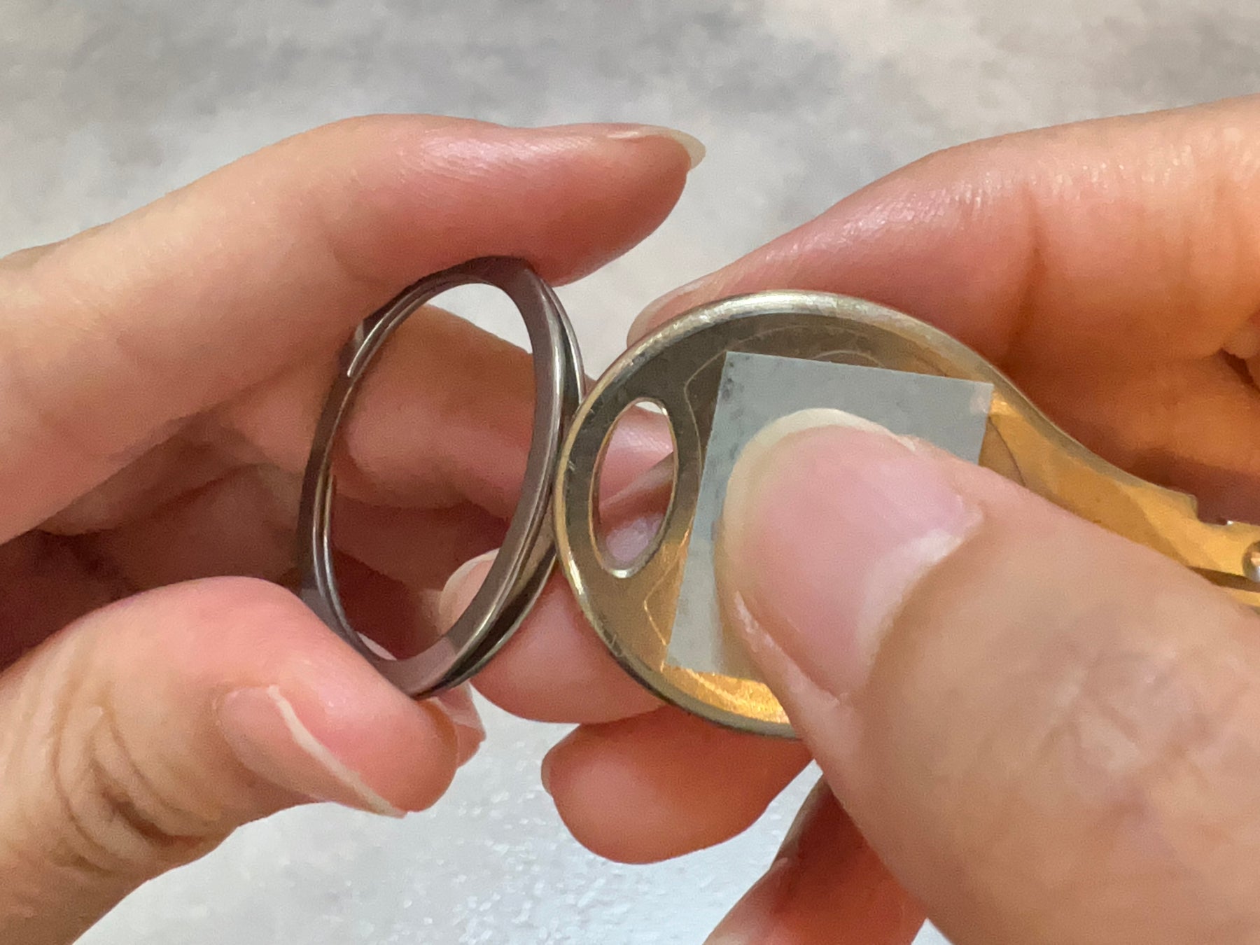 それは、爪でこじ開けることなく鍵の取り付けができ、指や爪・ネイルを傷めずに付け外しができる“奇跡のリング”