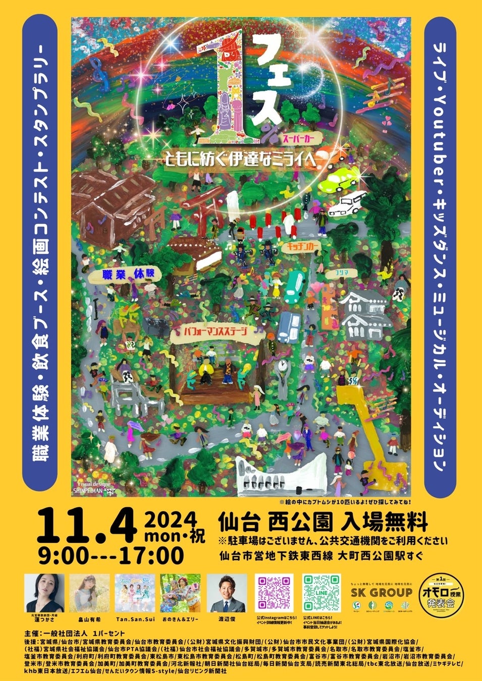 仙台市の人口100万人。その1%、つまり1万人が集結し、地域と子どもたちの未来をつなぐ場を生み出します。「たった1%の違い」が地域全体に新たな活力を与え、次世代リーダーを育てる。このフェスは、そんな小さな可能性が大きな変化を生む瞬間を見届ける場です。