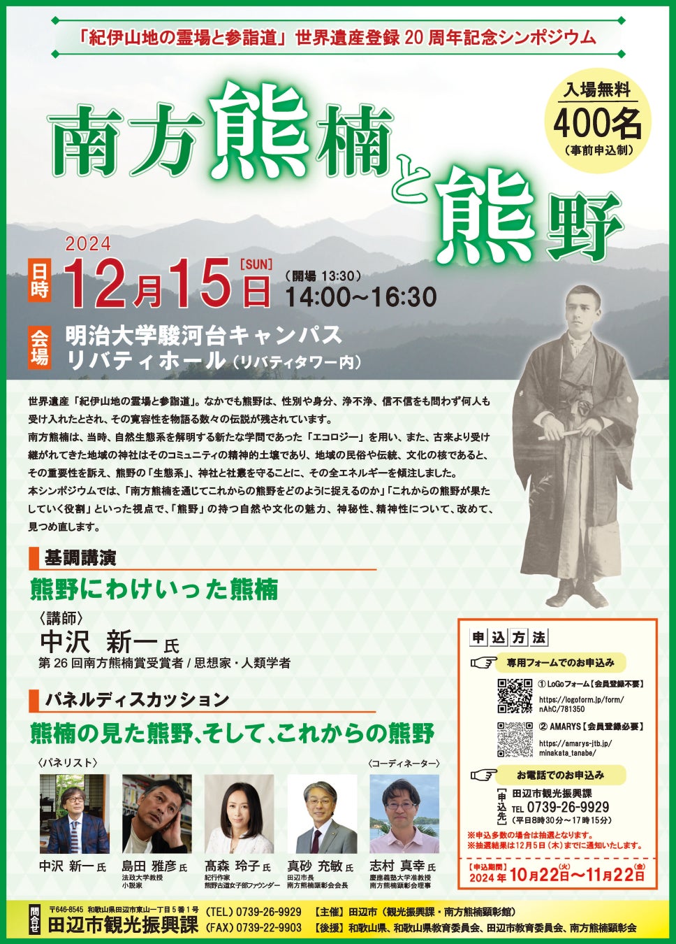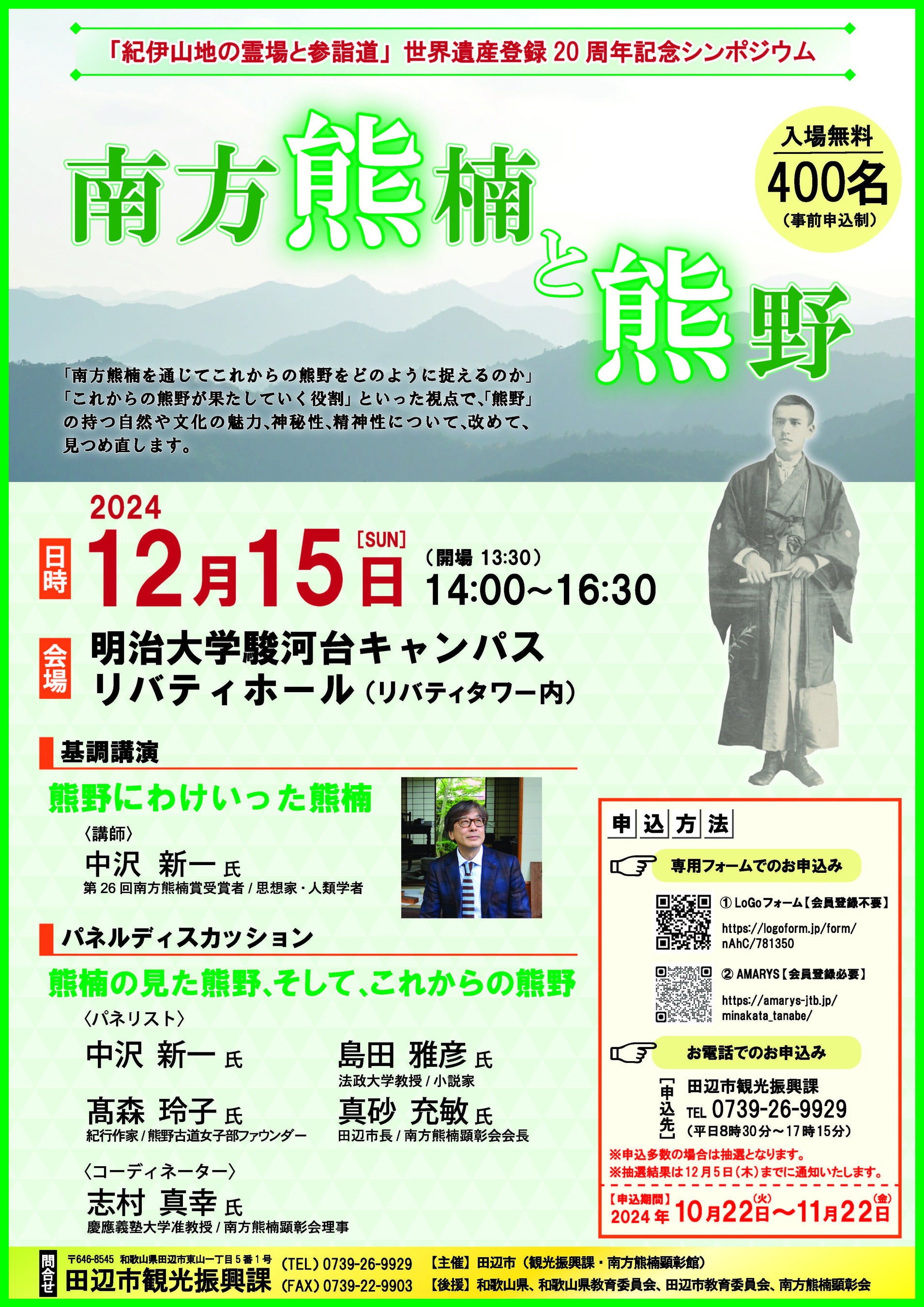 「紀伊山地の霊場と参詣道」 世界遺産登録20周年記念シンポジウム『南方熊楠と熊野』を開催!