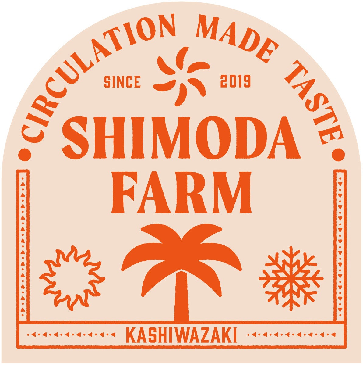 シモダファームが持続可能な地域づくりの一環として目指すことは、地域内外の方が集うことができる「シモダファームエリア」の創出です。越後バナーナの香り、甘さを生かし、サスティナビリティを表現したお菓子の開発と商品化。販売できる店舗開発。その場でしか食べることができない商品の提供。そして、子どもから大人まで楽しめるワークショップや展示スペースの設置などの他、ファームエリアには、柏崎市の地域産品等を置くことで、地域とのつながりを深め、魅力を広く発信できるようにしたいと考えます。また、これまでも実施してきた総合学習の内容を深め、地元大学との共同研究により越後バナーナの生産量や付加価値を高めていくことも視野に入れています。また、今回の検討にあたり、新ブランドスイーツロゴイメージを制作いたしました。排熱を活用し雪国新潟で誕生した越後バナーナや今後生んでいく循環をイメージし、また、排熱ファームの温かさの色合いをオレンジで表現しています。