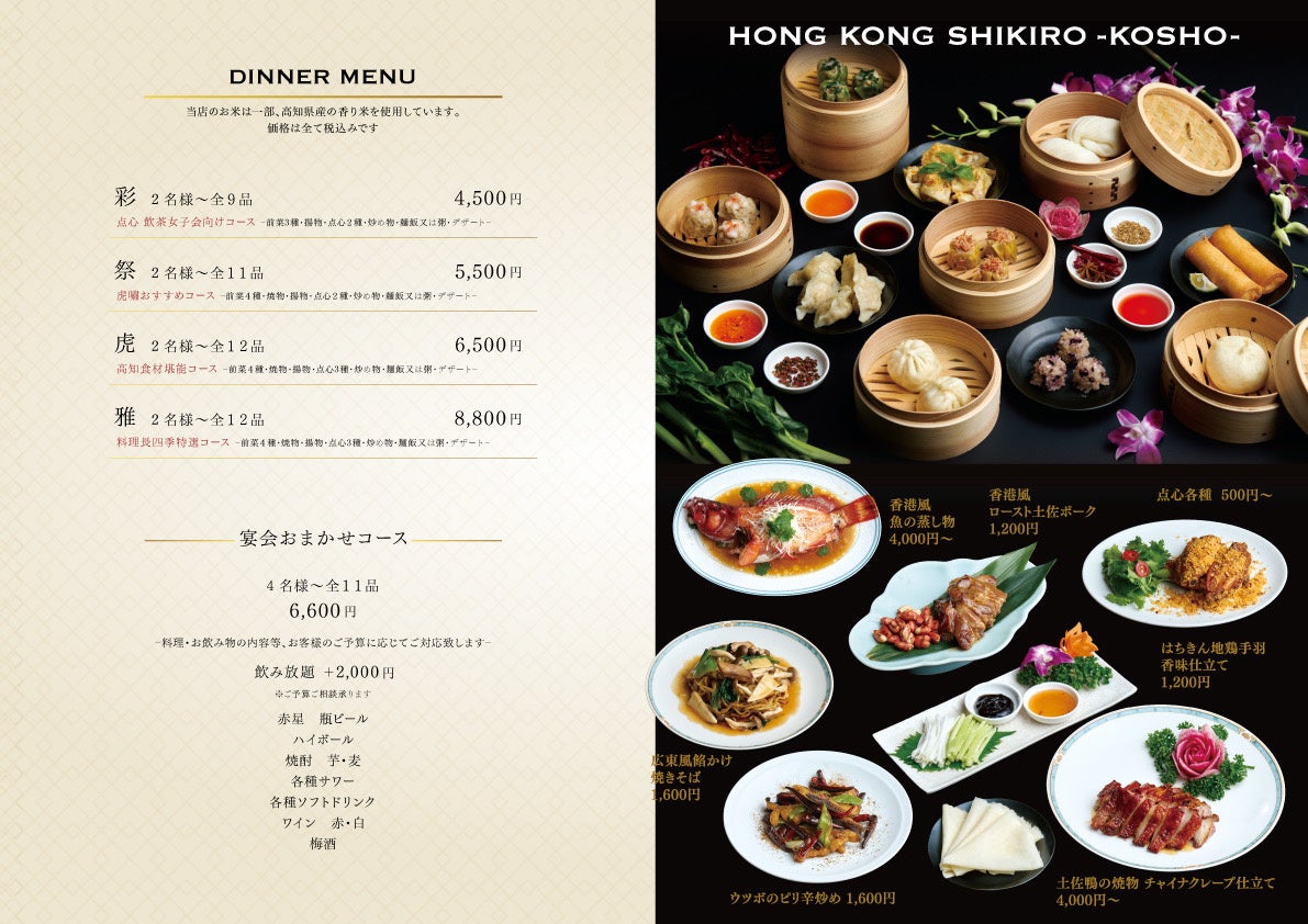 中華料理が好きな方々にとって、新しい中華のオプションとして、また土佐の文化を楽しむ場として「香港四季楼虎嘯-kosho」をお届けします。