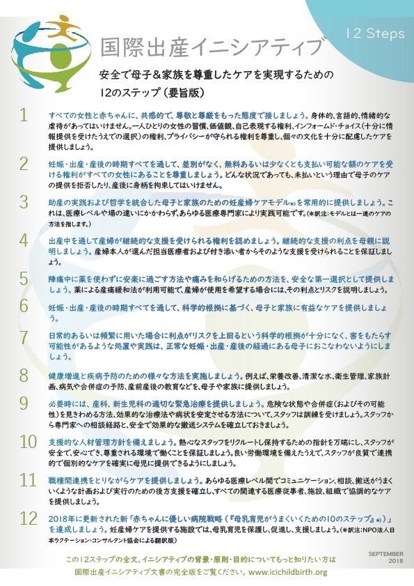 施設での出産でも一人ひとりの女性と家族が何を望んでいるかを理解してもらい、自分と赤ちゃんが大切にされたと感じられ、自信がつくような出産体験を実現する必要性がICI創設の背景の一つにあります。