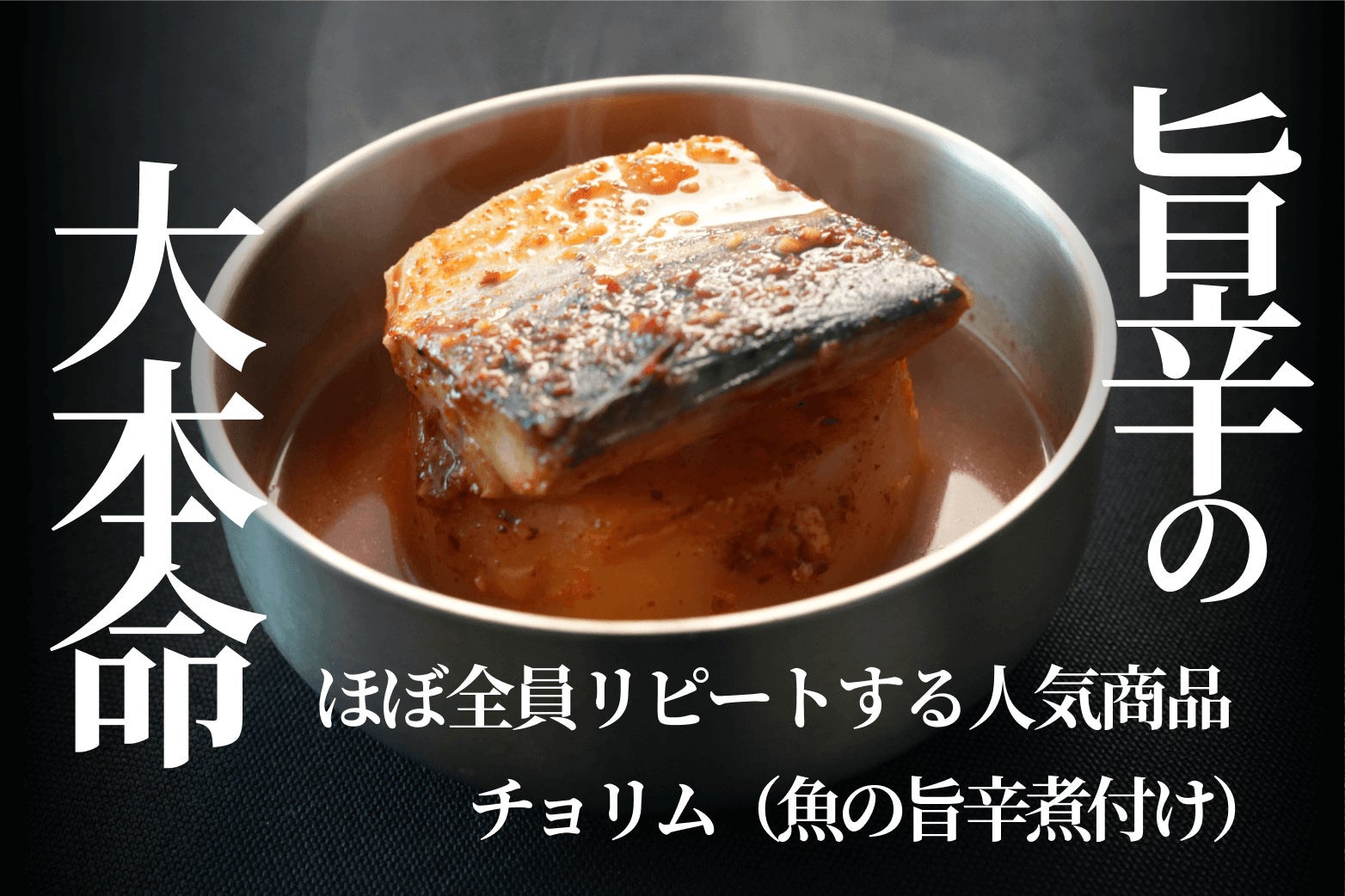 ①チョリム(魚の旨辛煮付け)は、15種類の調味料をブレンドし、魚と大根を煮込んでいる料理です。「旨辛の大本命」と記載のように、辛くて美味しい料理のど真ん中の味がします。ぜひ一度お召し上がりください。