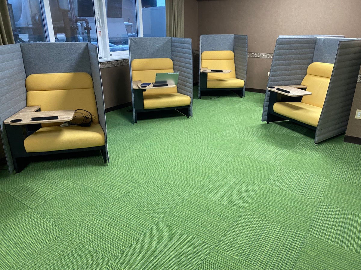 快適な個別ブースには、専用コンセント、カップホルダー、タブレットホルダーが備わっており、プライバシーを確保した上で、快適かつ効率的に作業を進められる空間です。