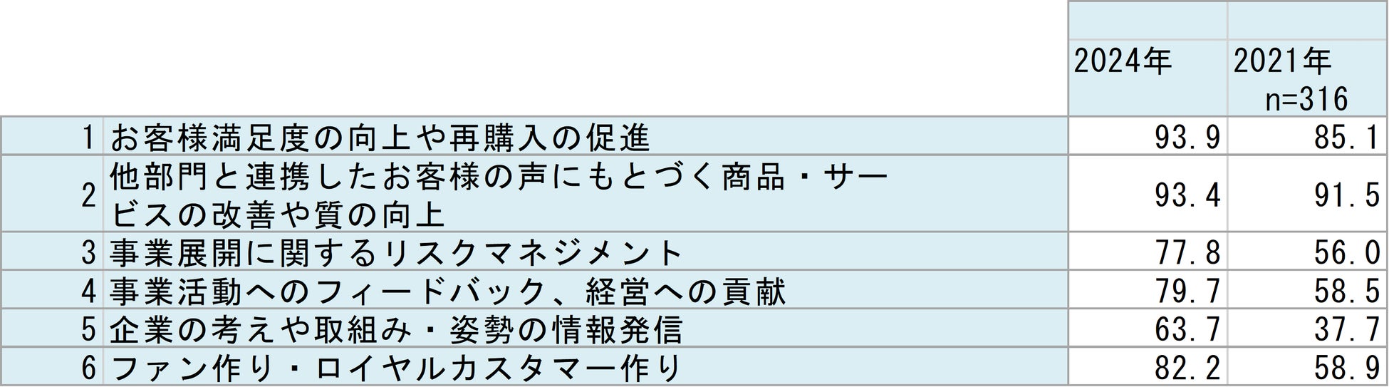 本調査では、消費者対応部門が経営戦略の中核的役割を担い始めており、消費者志向経営を深化させる必要性が浮き彫りになりました。特に「お客様の声のモニタリング」や「消費者情報を討議する会議」が増加し、顧客データの活用が経営と現場の連携強化に寄与しています。また、「ファンづくり」への関心が急増し、顧客との持続可能な関係構築が重要課題となっています。