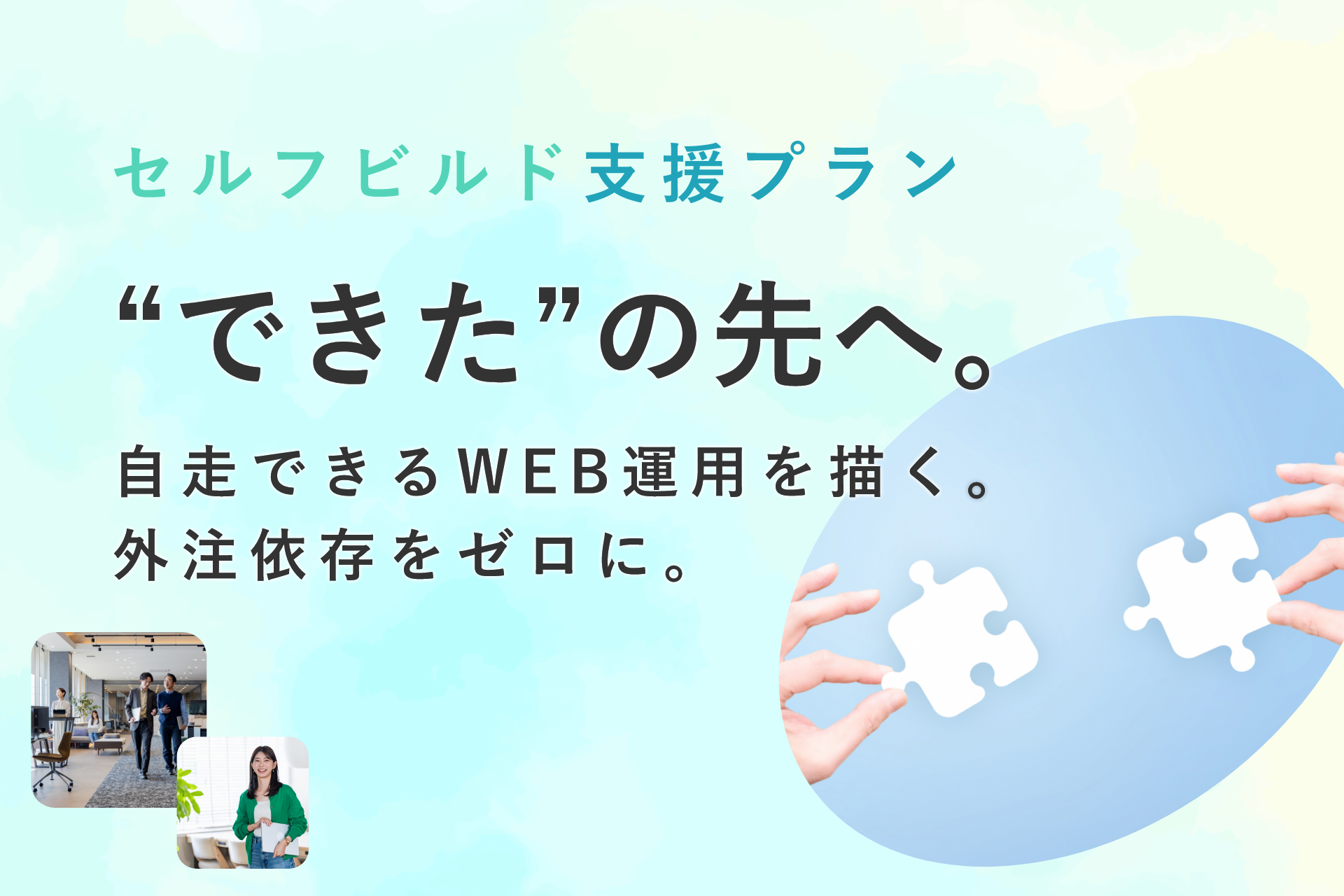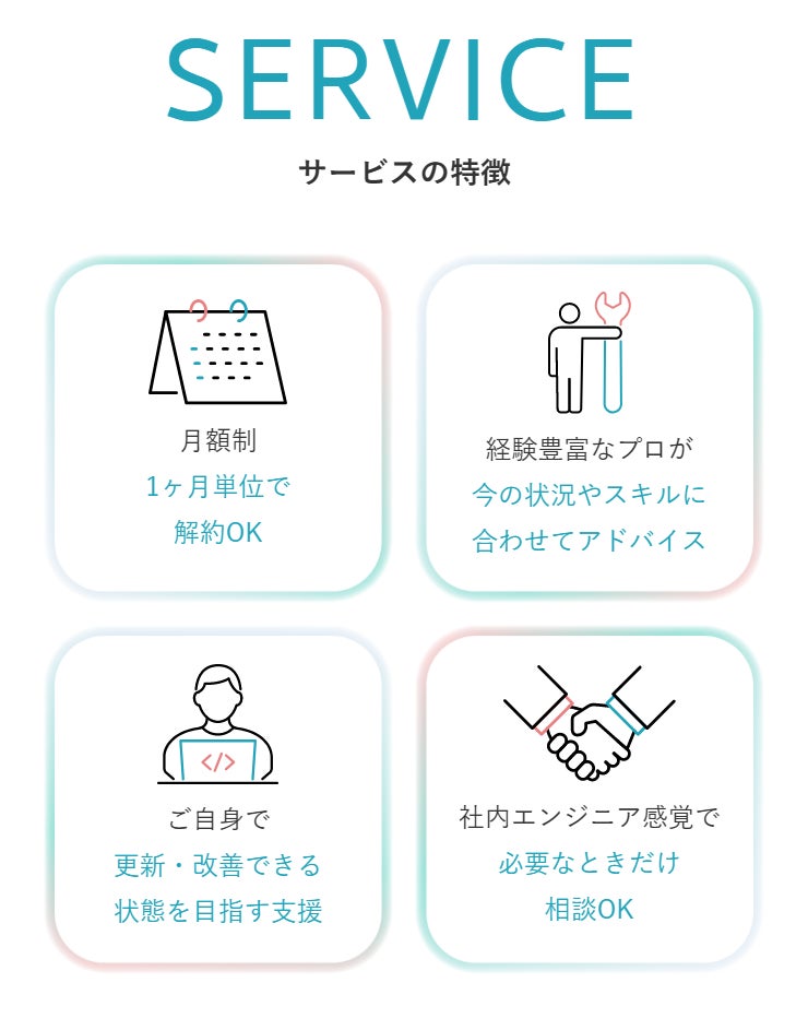 従来のように完成物の納品を目的とする制作支援とは異なり、本サービスは「自分で更新・改善できる状態(=自走できる状態)」の実現をゴールとしています。