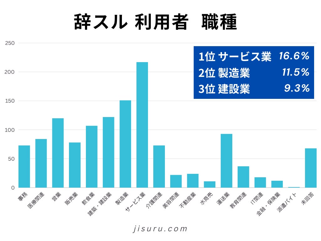 退職代行辞スルは、2024年7月10日にサービス開始し退職代行実施数900件、相談件数1,800人を超え急速に成長している退職代行サービスです。(https://jisuru.com/)