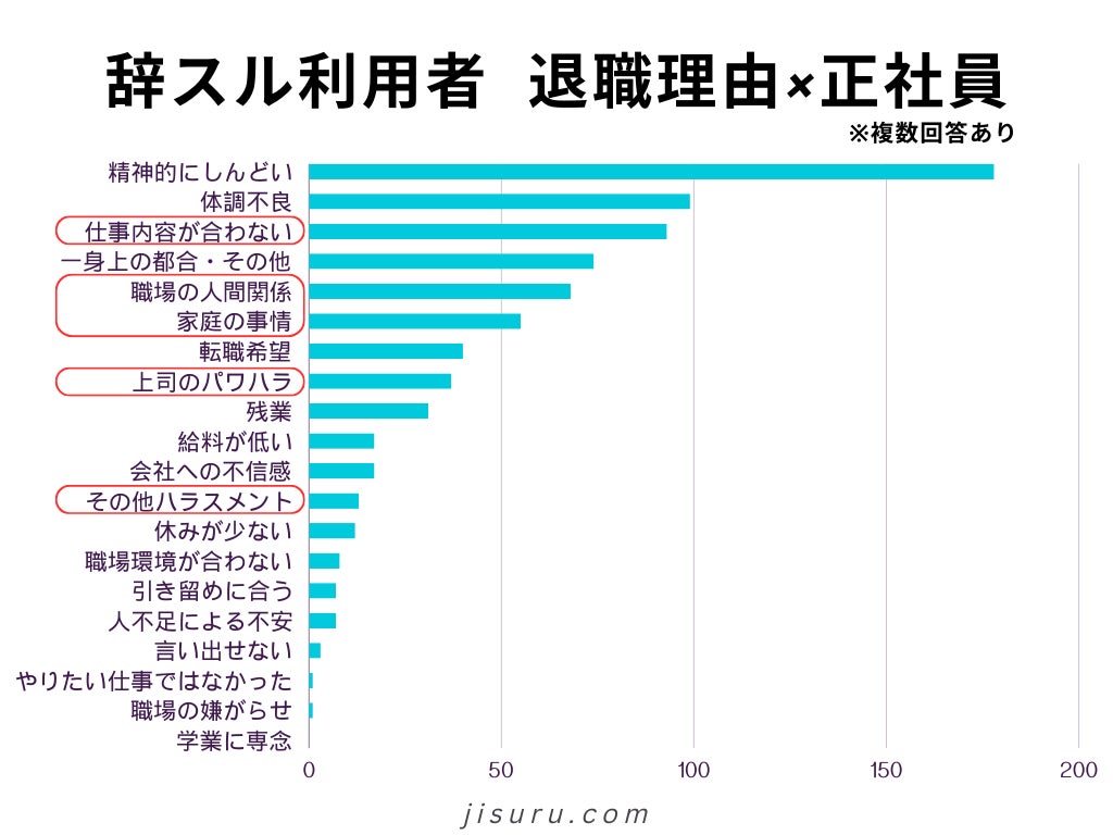 「仕事内容が合わない」から精神的なしんどさ、体調不良につながっていることがわかります。