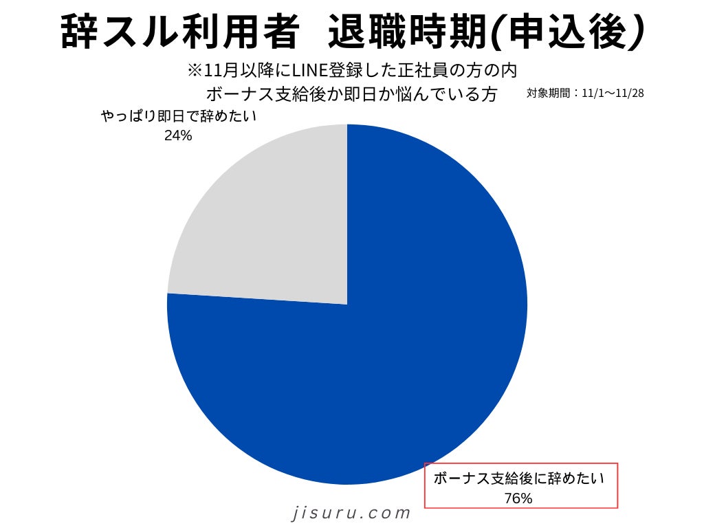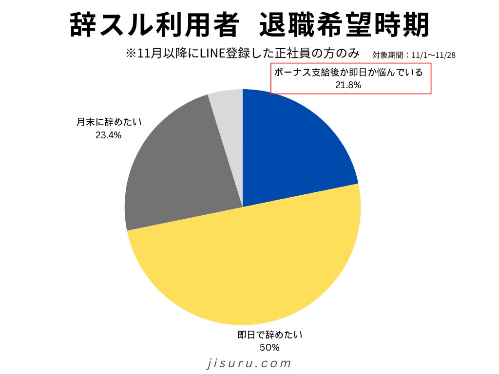 退職代行辞スル 利用者1,310名分のデータ公開!退職から見える今後の労働環境|●月からボーナス支給後に辞める検討をしている?!