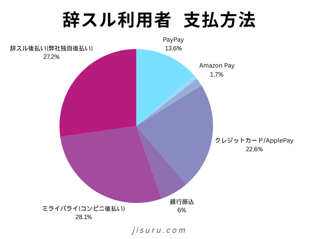 後払いが圧倒的に多くミライバライ(コンビニ後払い)、辞スル後払い(弊社独自後払い)で
