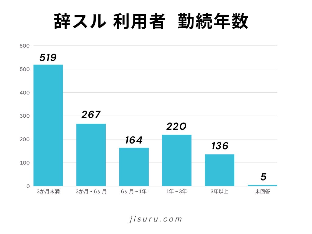 社内での会話や自分ではない別の人へのハラスメントや言動から、会社への不信感を覚える方もいらっしゃいました。少ない割合ではありますが、言い出しづらいという理由だけでご利用いただいている方もいらっしゃいます。辞スルへ即日退職の希望が多いことも納得できます。