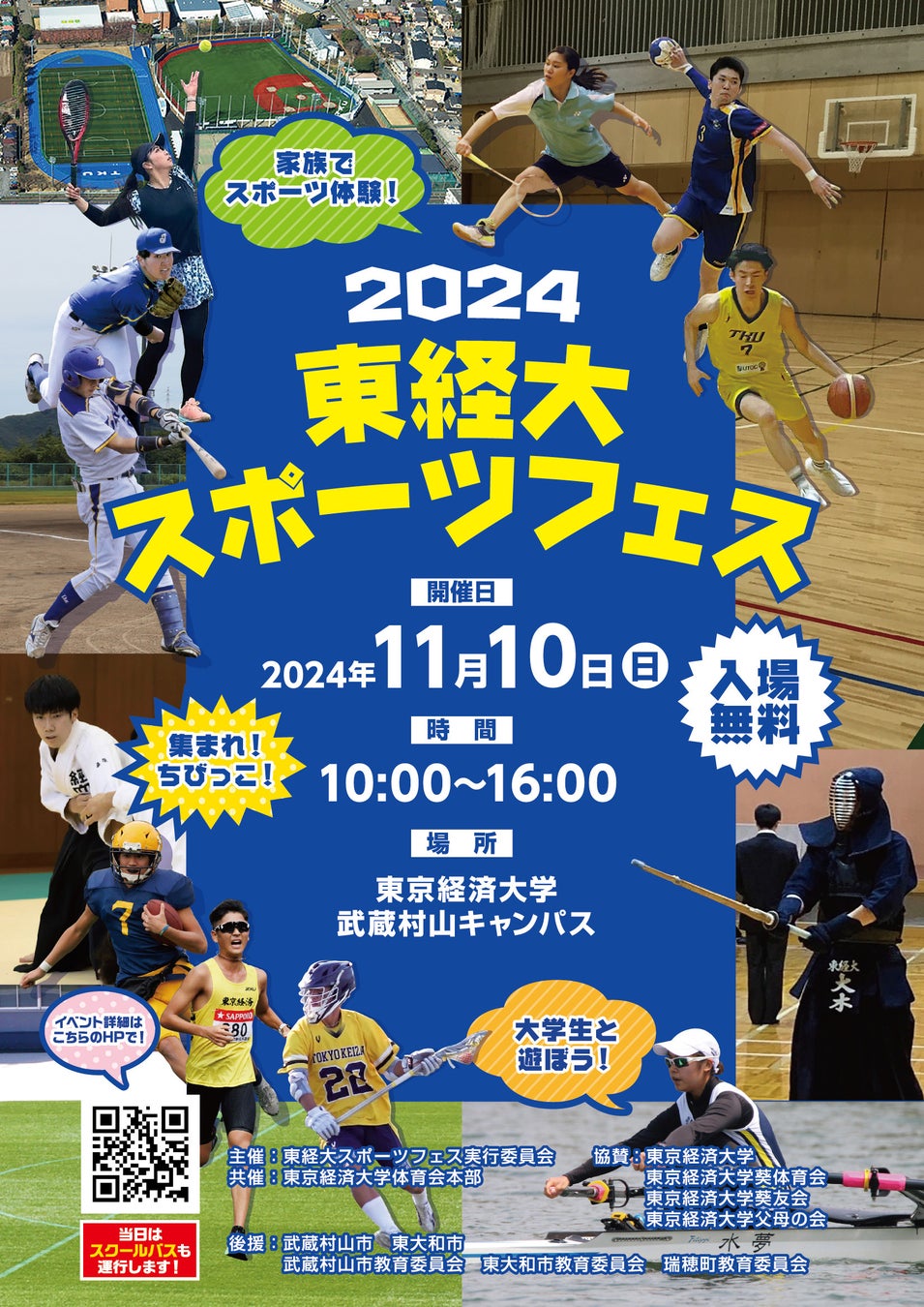 地域の皆さま、特に子供たちやご家族に様々なスポーツを体験していただくため、「東経大スポーツフェス」を開催いたします。