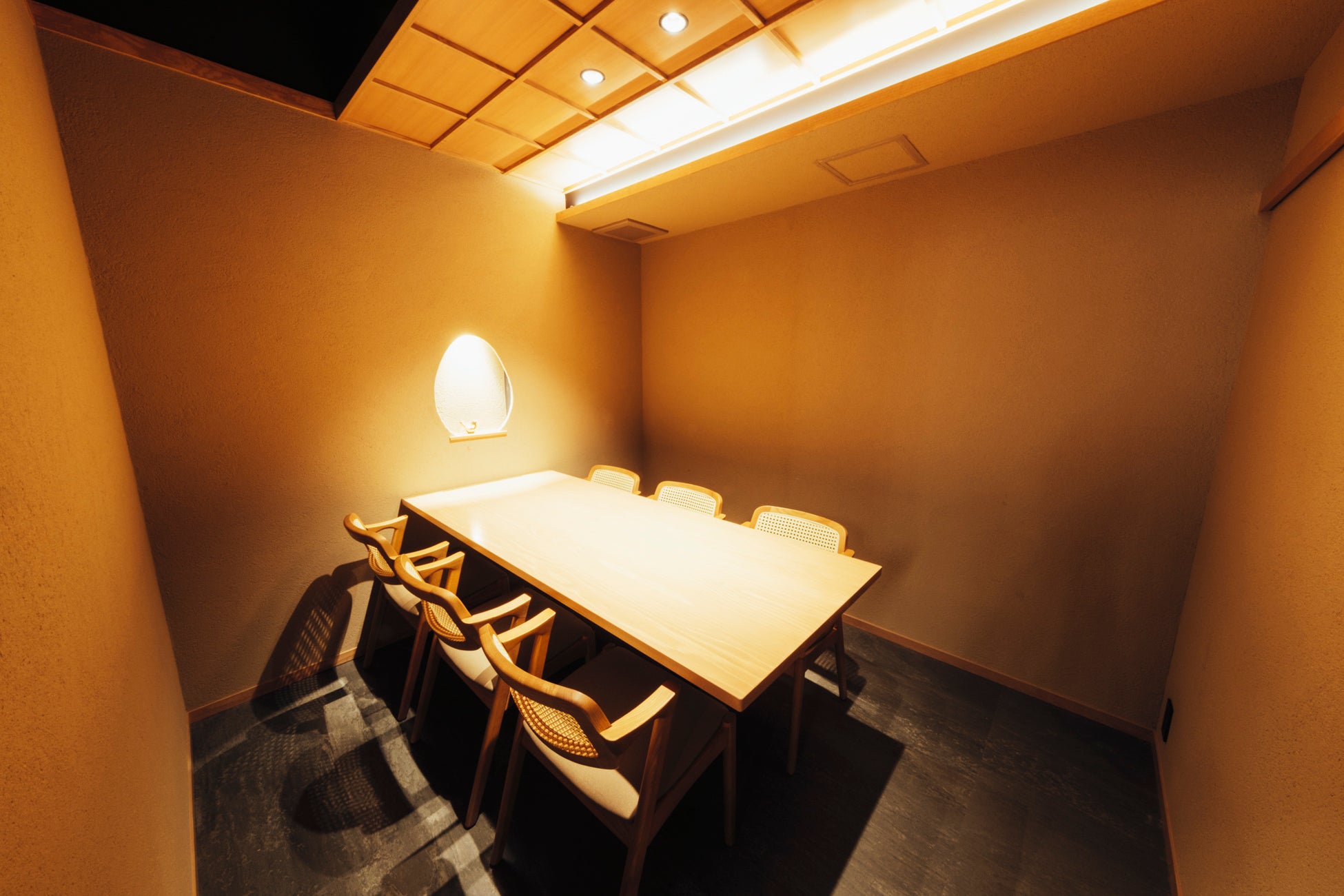 店内は、木の温もりと日本らしい藍色を基調としたモダンなデザイン。友人との集まりやデートはもちろん、接待や特別な会食にも最適な居心地の良い空間をご用意しています。プライバシーを確保できる完全個室も完備しており、さまざまなシーンに対応します。