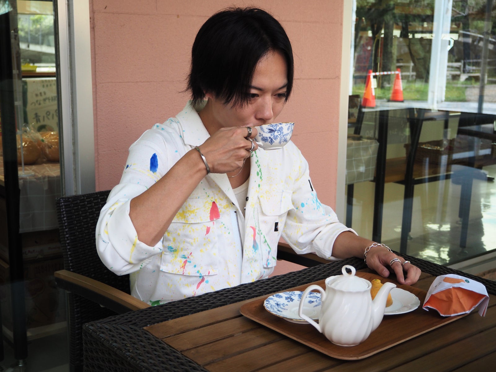シンガーソングライター杉本琢弥さんに、11月9日と10日に津奈木町で開催される「つなぎワンダーランド」のイベントに先駆け、食とアートのコンテンツを体験していただきました。TikTokを中心に「熊本の彼氏」として大人気の杉本さんが体験の際に着用したつなぎ服の展示や等身大パネルがお出迎えします。また、杉本さんが手がけた商品もサイン入りで展示されます。