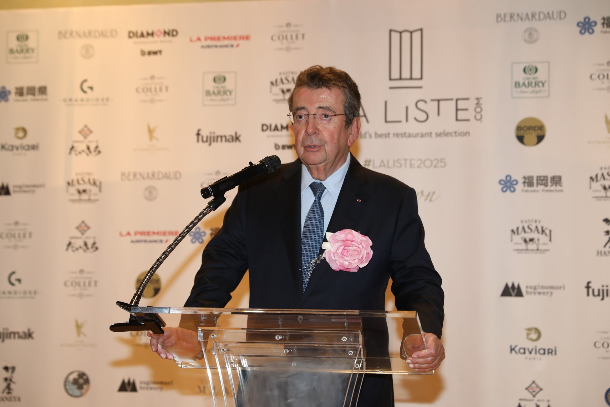当日は、フィリップ・セトン駐日大使ご臨席のもと、LA LISTE創始者および代表であり、永世フランス共和国大使のフィリップ・フォールをはじめ、ギィ・マルタン、レジス・マルコン、パトリック・アンリルー、アラン・デュカス各氏フランスを代表する著名シェフが来日し、2025年版のTOP1000にノミネートされた日本のレストラン、ホテル、パティスリーおよびブーランジュリーより約70組が参集しました。また日本における今年の特別賞13賞の発表と表彰も行われました。世界のTOP1000ランキングの発表は、2024年11月25日(月)、パリのフランス共和国外務省で受賞式とともに行われる予定です。